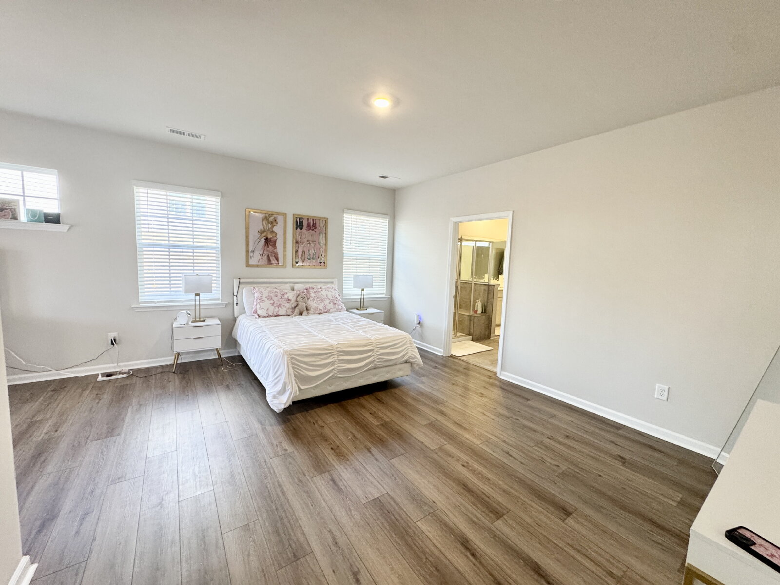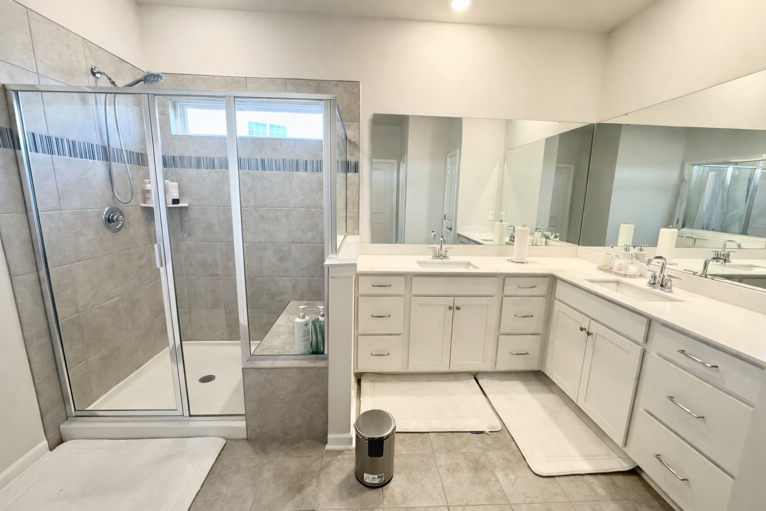 The primary suite offers a relaxing retreat with a spacious bathroom that includes a standalone shower and an L-shaped double vanity, giving everyone room to get ready without feeling crowded.